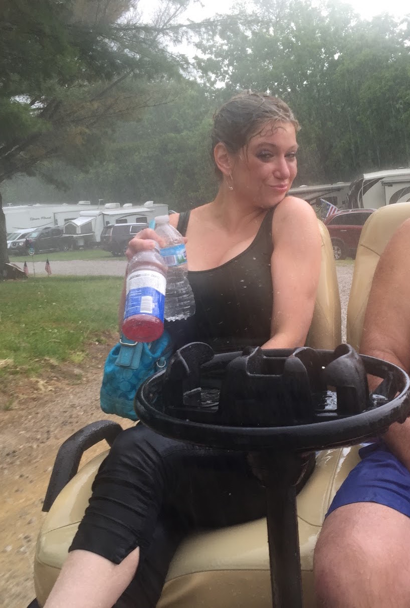 We got to shore just as it hit. So, we rode back in the rain. Lauren volunteered to ride in the back back and did not mind getting soaked.