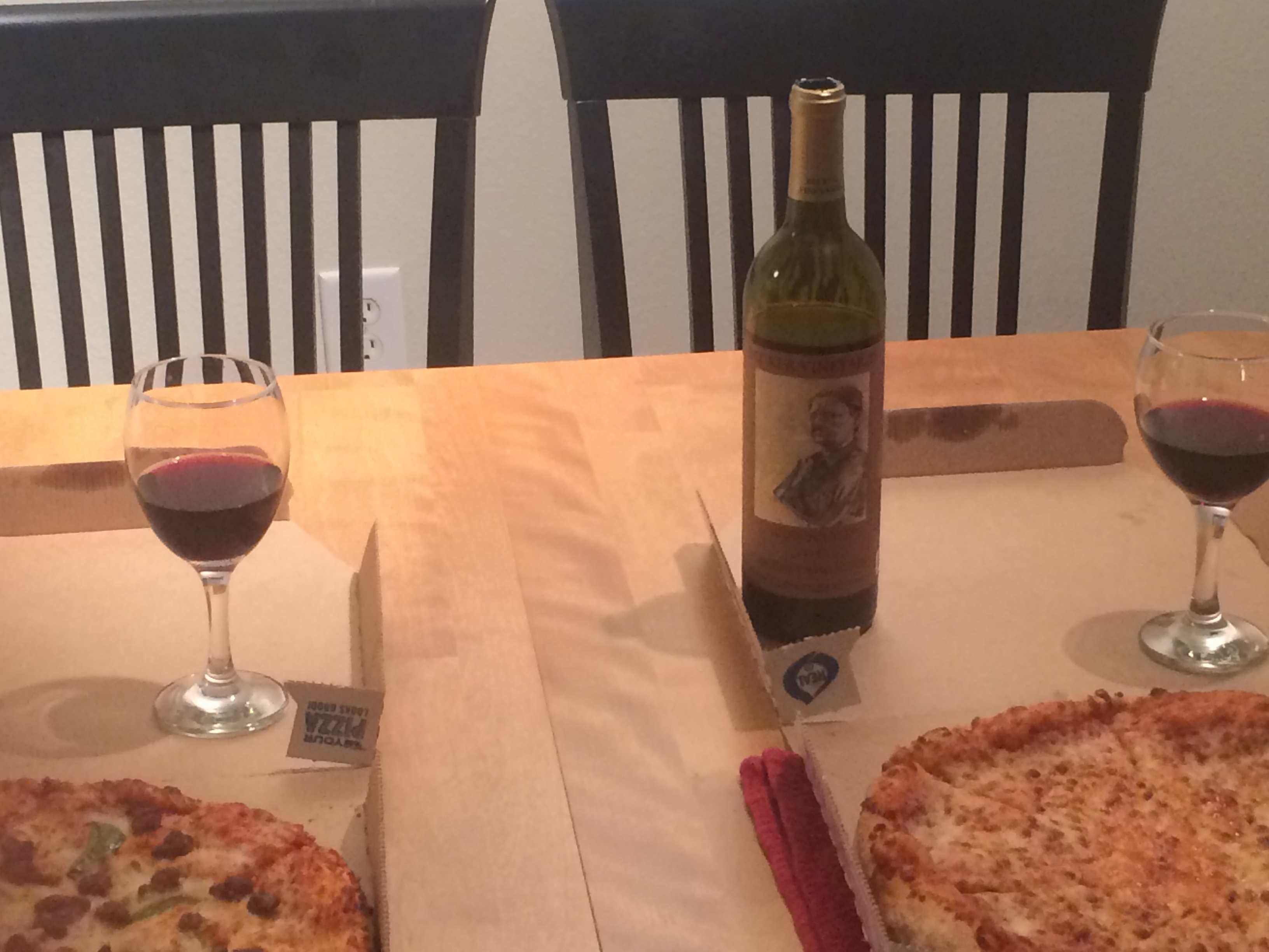 The best thing about the move was that i told Him that is was a tradition in my life to have the first meal as pizza. So the first night that we stayed at our new place we ordered pizza. He also kicked it up a notch and bought a bottle of red wine. It was one of the most romantic things He has done so far. (You will notice that He one ups Himself all the time in this category.)
